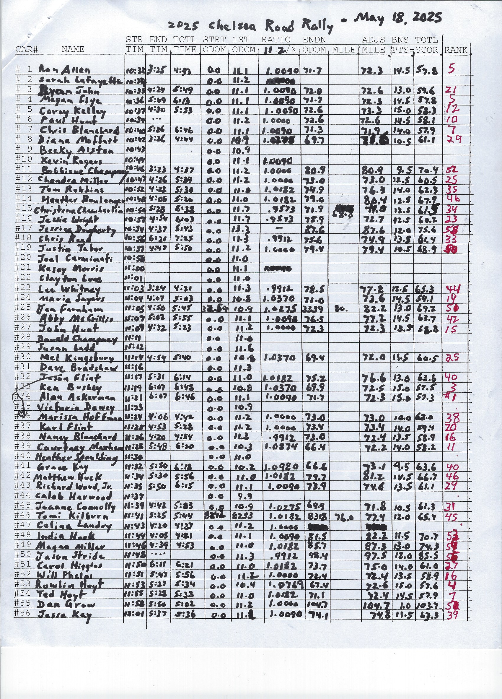 The 30th running of the annual Chelsea Road Rally is officially in the books. The Rally was held on May 18st with decent weather. 74 vehicles participated in the contest, which once again benefited the Roberts-Gould Athletic Field Fund.